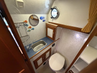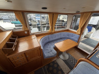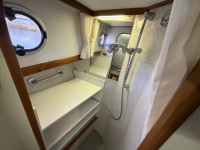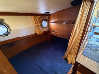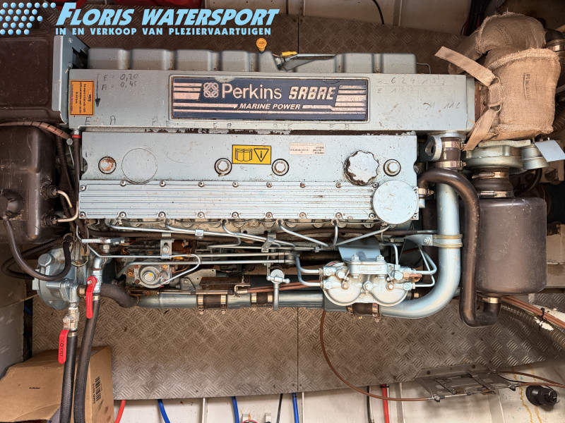 Im Maschinenraum arbeitet ein leistungsstarker 225 PS starker Perkins-Sechszylinder-Dieselmotor. Die Donky 36 ist für ihr außergewöhnlich ruhiges Fahrverhalten bekannt, und dieses spezielle Modell ist zudem mit Bug- und Heckstrahlruder ausgestattet.