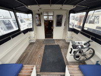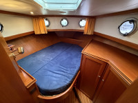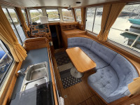 Diese robuste Pedro Donky 36 ist ein ebenso stabiles wie komfortables Boot. Dieses Modell mit offenem Cockpit ist seit vielen Jahren ein bewährter Erfolg im Pedro-Sortiment. An Bord finden Sie unter anderem einen Doppelsteuerstand, der das Segeln vom offenen Cockpit aus ermöglicht. Die Cockpitpersenning wurde kürzlich erneuert und ist daher in exzellentem Zustand. Dank der CE-Kategorie B ist das Boot sowohl für Binnengewässer als auch für offene Gewässer geeignet.