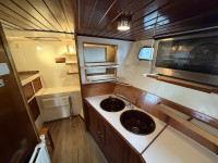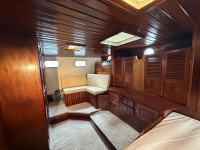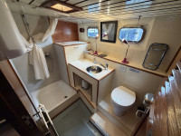 Diese sehr geräumige Staverno ist ideal für längere Aufenthalte an Bord. Es ist ein Schiff voller Hydraulik und Elektrik. Wir untersuchen derzeit die Funktionsweise und den aktuellen Status.