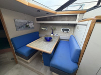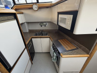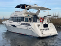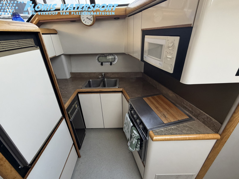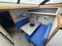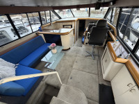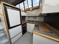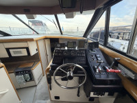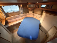 Die Bayliner 4387 mit ihren zwei Hino US Marine Turbodieselmotoren ist ein absolutes Original. Ausgestattet mit zwei Nasszellen, einem Badezimmer und einer geräumigen Pantry, eignet sie sich ideal für den Daueraufenthalt oder längere Reisen. Dank der beiden Motoren sowie Bug- und Heckstrahlruder ist dieses Boot äußerst wendig. Die Steuerung von der Flybridge aus bietet eine fantastische Aussicht, und die Sitzbänke bieten ausreichend Platz für Gäste. Die beiden Sechszylinder-Dieselmotoren leisten jeweils beeindruckende 250 PS.