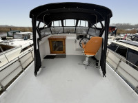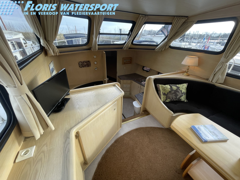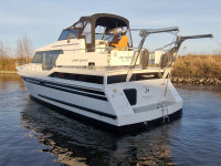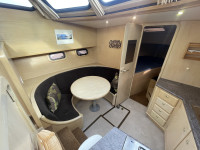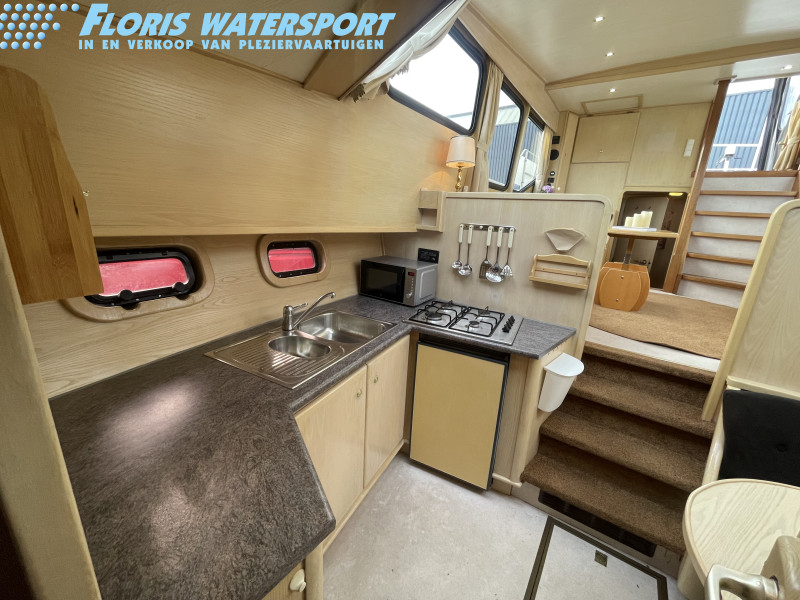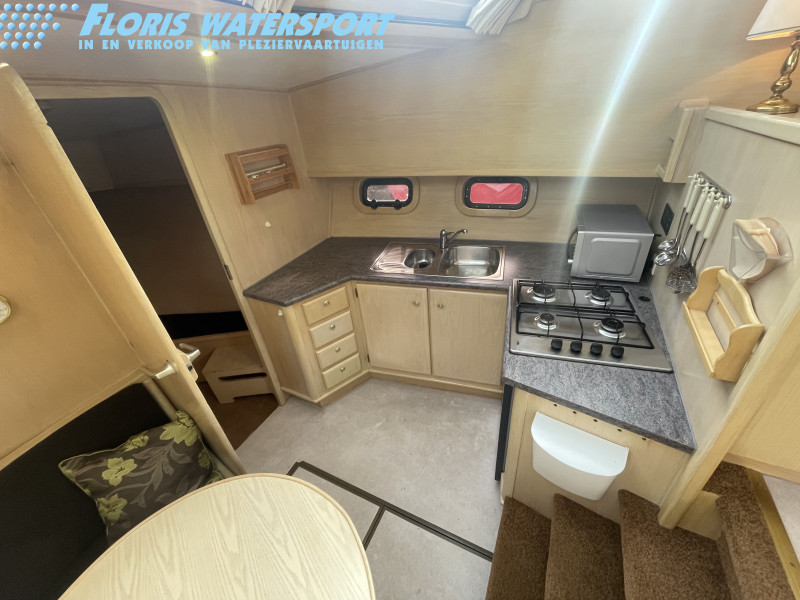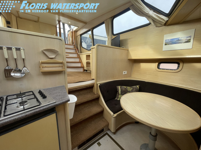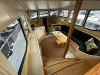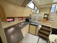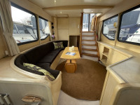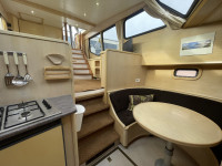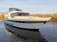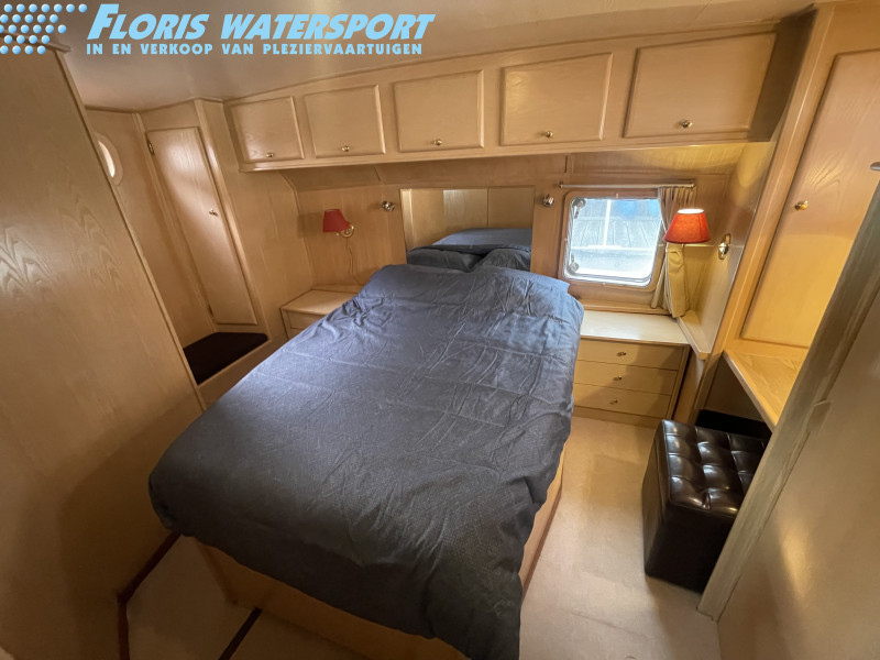 Ce Funcraft 1250 est un bateau moderne et bien entretenu, entièrement repeint il y a trois ans. Il offre un agencement agréable, avec des couchettes doubles dans les cabines avant et arrière. Le carré se transforme en couchage supplémentaire, offrant un espace de couchage confortable pour un groupe plus important. Grâce à sa belle hauteur sous barrots et à son intérieur lumineux, ce bateau est idéal pour de longs séjours à bord, voire pour y vivre à l'année. Le compartiment moteur abrite un puissant moteur diesel DAF 615, 6 cylindres, développant 120 ch. Associé au propulseur d'étrave, il garantit une navigation agréable et confortable.