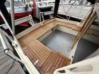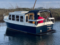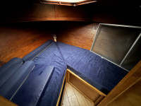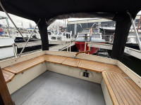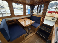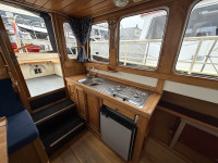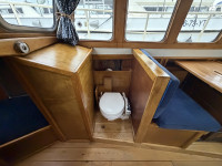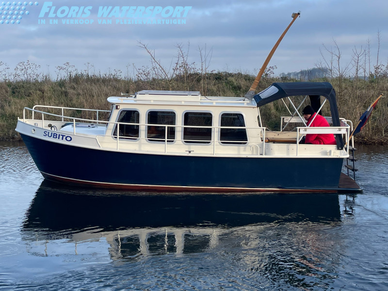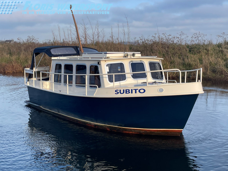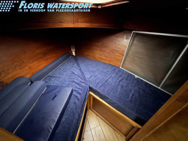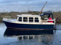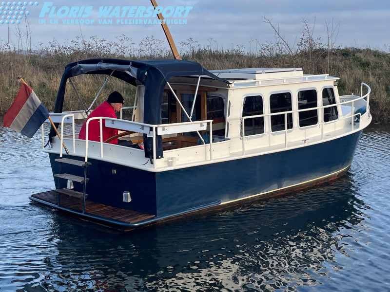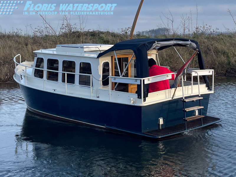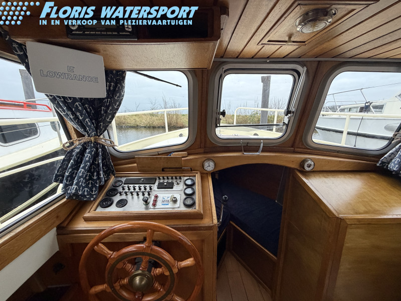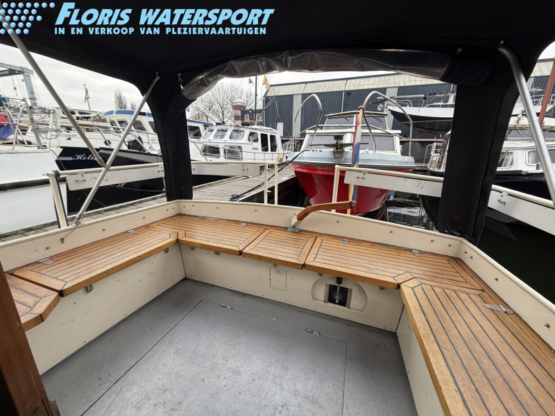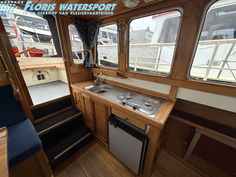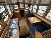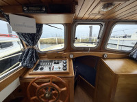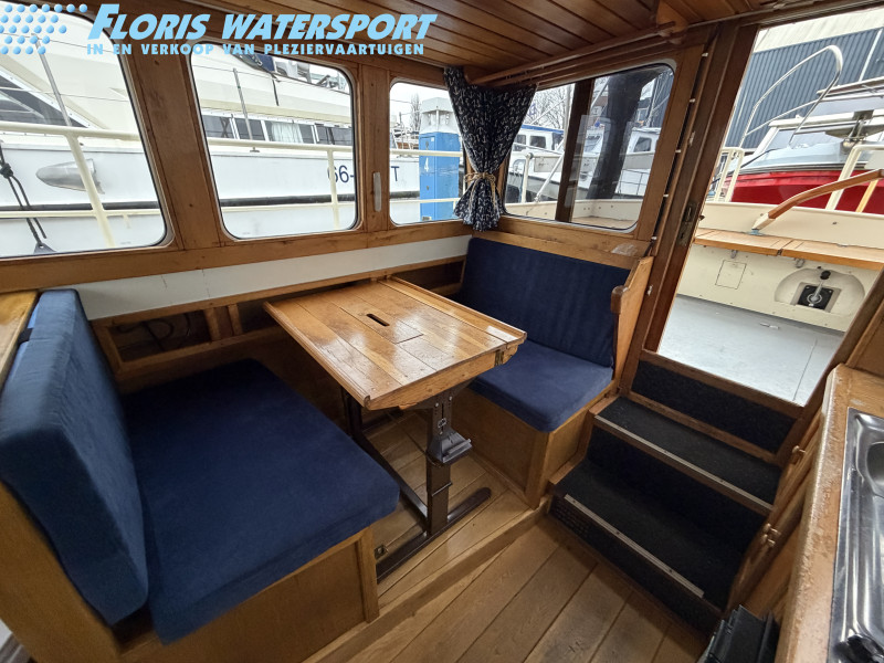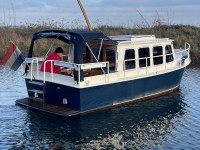 Ce Jetten Bully 700 est un parfait exemple de petit bateau charmant et confortable. Son allure sur l'eau est gaie et originale. L'intérieur est chaleureux et aménagé avec goût, et les boiseries lui confèrent un aspect authentique. Grâce à la double barre, la navigation depuis le cockpit ouvert est également très agréable. La salle des machines abrite un moteur diesel Lister Petter à 3 cylindres.