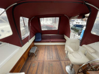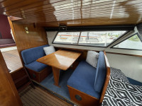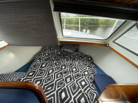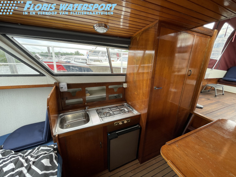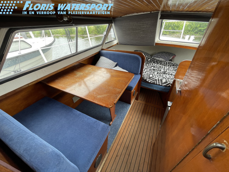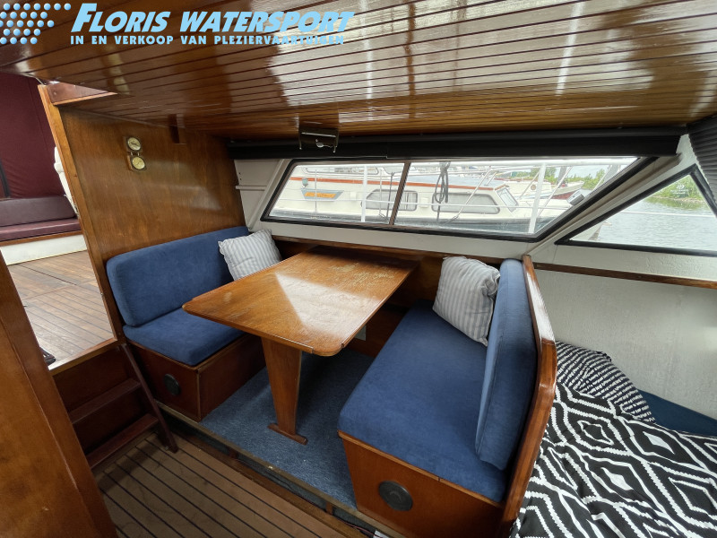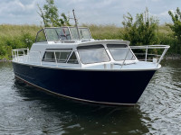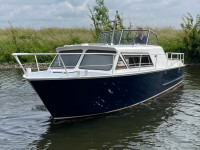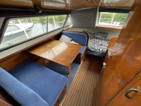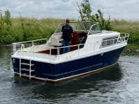 Ce Target Express est prêt pour de nouvelles aventures. Sur les photos, le navire est joliment ouvert, sans capote, mais il est bien sûr doté d'une capote, visible sur la photo du quai. L'espace à bord est suffisant et l'intérieur est magnifiquement aménagé dans un style traditionnel. La salle des machines est équipée d'un moteur diesel Peugeot Indenor 4 cylindres fiable de 55 ch. Grâce au propulseur d'étrave, le navire offre d'excellentes caractéristiques de navigation.