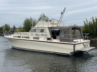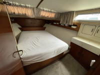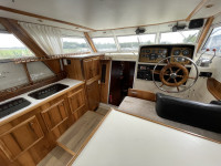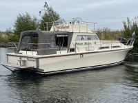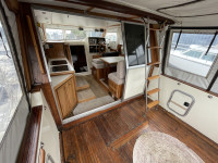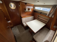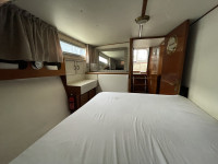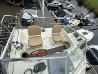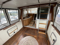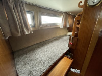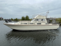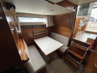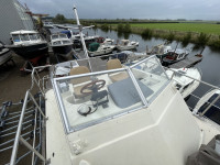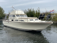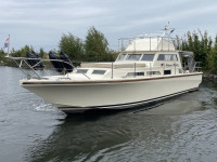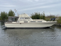 Deze mooi en klassiek gelijnde Jeanneau America is uitgerust met twee goedlopende Renault-dieselmotoren. Het is een fraaie boot, al vergt ze technisch nog wel wat aandacht. Zo zijn de watergesmeerde schroefaskeerringen lek, heeft de bakboordmotor een lekkende verstuiver en kan het geheel een grondige opfrisbeurt gebruiken. Maar daarna heb je natuurlijk weer een prachtige boot! Wij komen er op dit moment niet aan toe, vandaar de scherpe prijs. Kortom: een mooi project voor de handige watersporter.