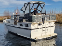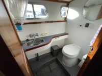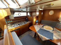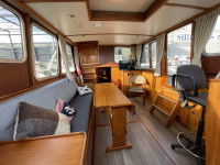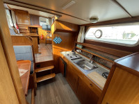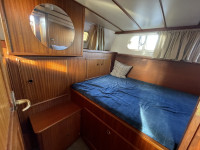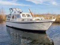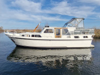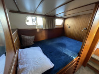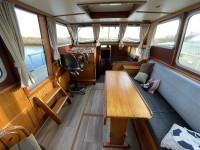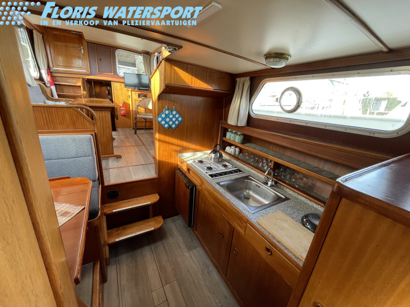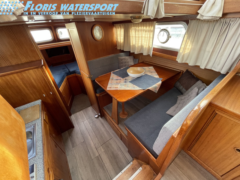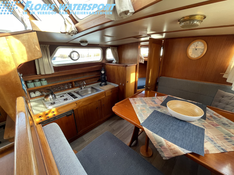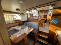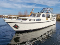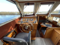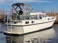 Deze Blauwe Hand kruiser 1140 GSAK is begin jaren tachtig gebouwd door Holterman & De Vries in Meppel. Een mooie, ruime kruiser met voldoende plek aan boord voor een groter gezelschap. Zo zijn er maar liefst 8 slaapplaatsen te creëren. Dankzij de dubbele besturing kan er zowel binnen als buiten worden gevaren. En met zowel een boeg- als hekschroef is aan- en afmeren bovendien kinderspel. In het motorruim ligt een sterke DAF 575, met een vermogen van circa 100 pk. Hoewel de motor wel een nieuw laagje hittebestendige verf kan gebruiken, loopt deze 6-cilinder dieselmotor verder prima. Kies het ruime sop, schip ahoy kapitein!