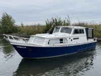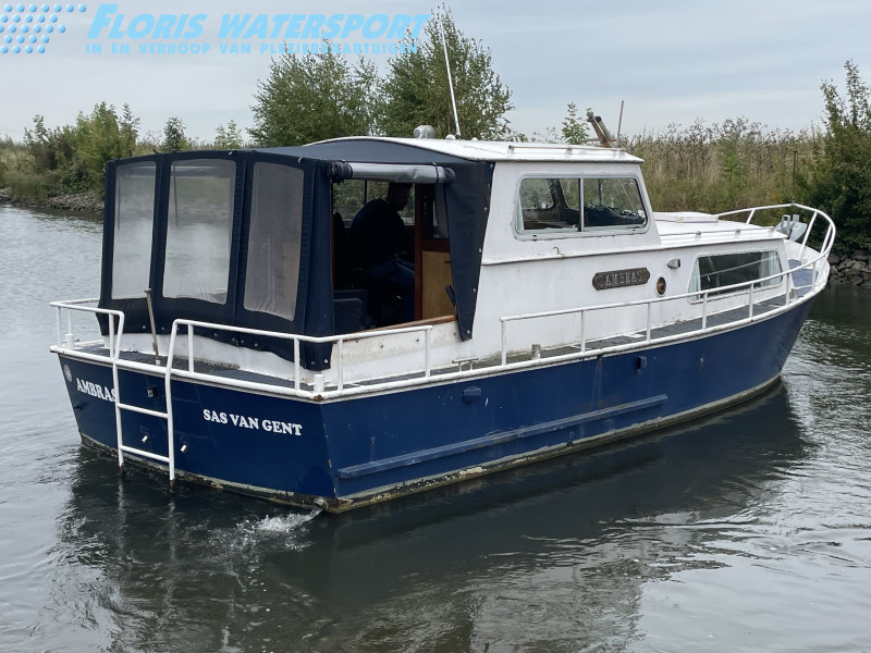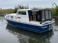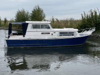 Deze crownkruiser is van buiten toe aan een schilderbeurd, maar van binnen is hij nog keurig netjes en voorzien van een moderne Lombardini dieselmotor.