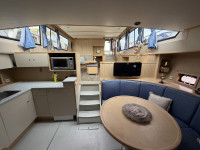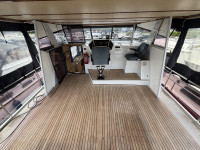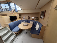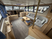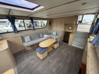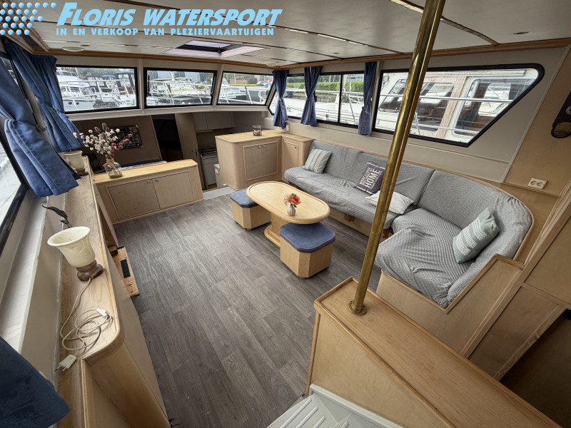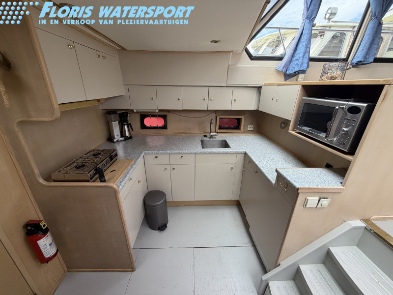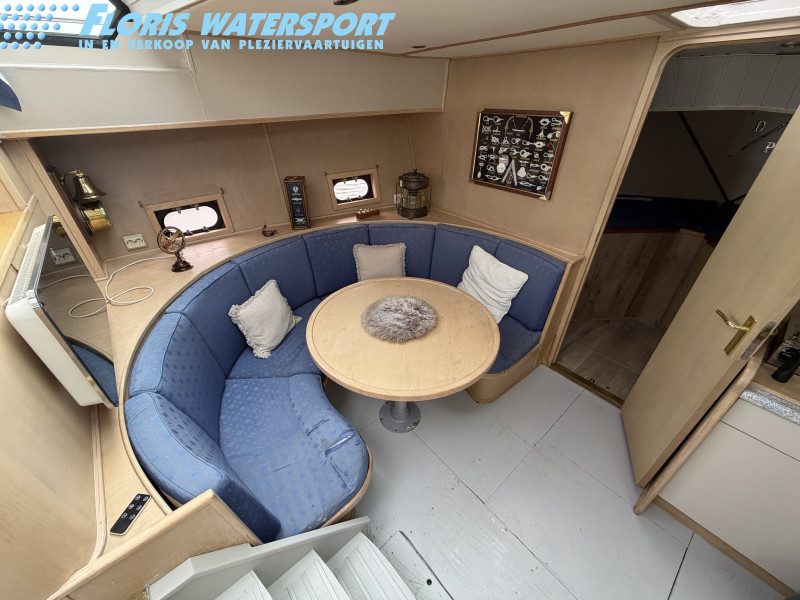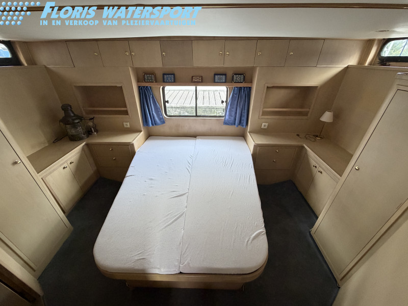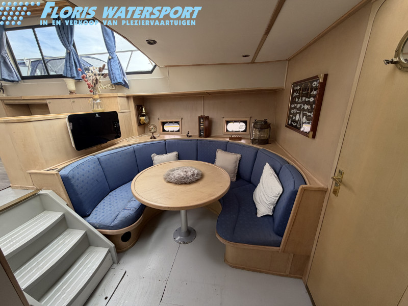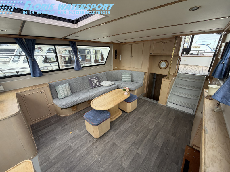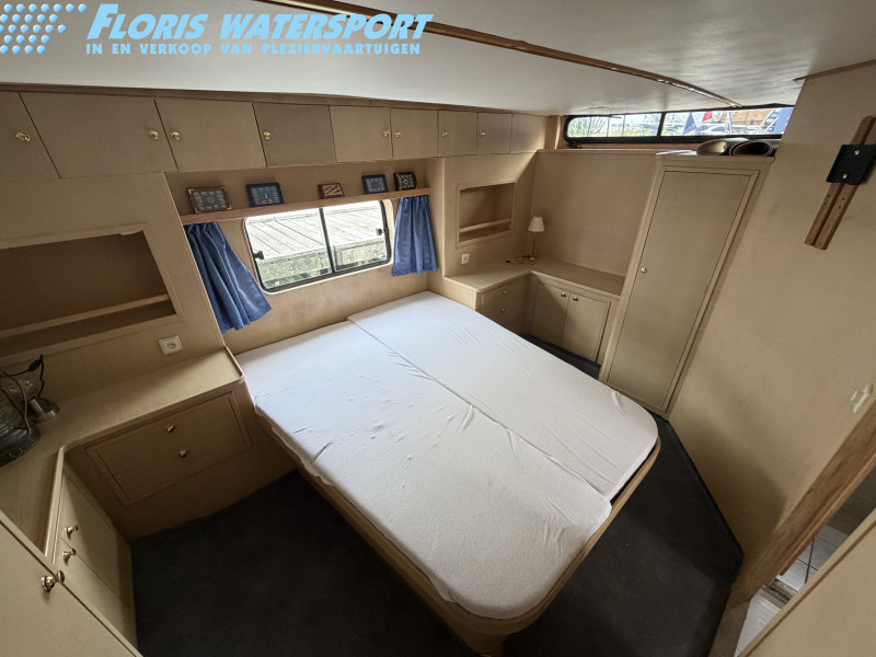 Deze Hartman Ecoline 15 biedt heerlijk veel ruimte aan boord. In het vooronder bevindt zich een gezellige rondzit met keuken. De living is voorzien van een groot dakraam, waardoor er extra veel daglicht binnenvalt. In de achterkajuit staat een ruim Frans bed en is er volop kastruimte aanwezig. Daarnaast vind je hier de royale badkamer met douche en toilet. In het motorruim ligt een krachtige DAF 825, een 6-cilinder dieselmotor met 150 pk.