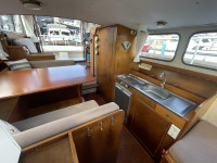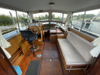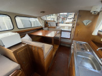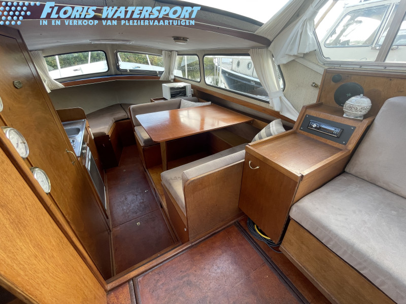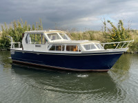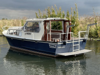 Deze prachtige Hooveld 850 verkeert in bijna nieuwstaat en is altijd met zorg onderhouden, er is nooit bezuinigd op onderhoud. Uitgerust met een Peugeot-motor in uitmuntende staat, boegschroef voor moeiteloos manoeuvreren, nieuwe hardhouten pui, zonnepaneel, netjes verzorgde keuken en een romp die strak in de lak zit.