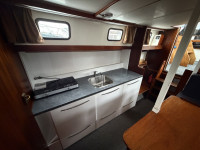 Deze Kooijman en De Vries draagt een mooi stukje geschiedenis met zich mee, dat bovendien uitstekend is gedocumenteerd. Inclusief originele bouwtekeningen en het originele “kontrakt” voor de bouw. De romplijn, indeling en afwerking geven het schip een prachtig authentieke uitstraling. Aan boord is volop ruimte en de boot is voorzien van diverse gemakken. In het motorruim ligt een moderne Mitsubishi 4-cilinder dieselmotor van 42 pk, die samen met de boegschroef zorgt voor fijne en betrouwbare vaareigenschappen.