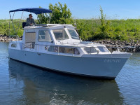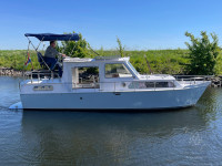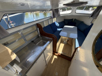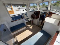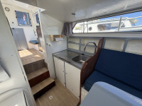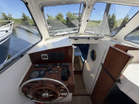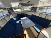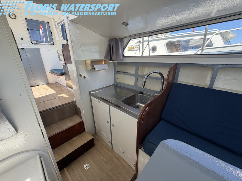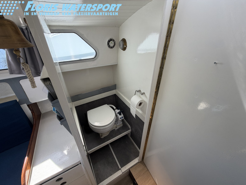 Deze Mebo 850 GSAK kan op sommige punten wat aandacht gebruiken, bijvoorbeeld in het houtwerk van het deurtje en het dakluik, evenals in het schilderwerk aan de buitenzijde. Daar staat tegenover dat de boot is uitgerust met diverse aangename voorzieningen die het verblijf aan boord zeer comfortabel maken, zoals een groot zonnepaneel, verwarming, warm water en een boegschroef. Dankzij de dubbele besturing kan er zowel binnen als buiten gevaren worden, wat het vaarplezier en de flexibiliteit vergroot. In het motorruim ligt een goedlopende Vetus 4-cilinder dieselmotor die 33 pk levert. In combinatie met de boegschroef zorgt dit voor prettige en betrouwbare vaareigenschappen.