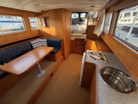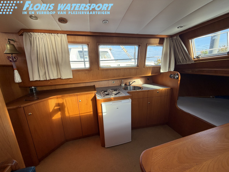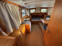 Deze opgebouwde reddingssloep is duidelijk met zorg door een liefhebber onderhouden. De buitenkant kan wel een poetsbeurt of wellicht een nieuw laagje verf gebruiken, maar van binnen is de boot om door een ringetje te halen. Het interieur is vakkundig en smaakvol ingetimmerd. In de open kuip is een gezellige rondzit te vinden. Aan boord zijn diverse voorzieningen aanwezig die het verblijf extra comfortabel maken, zoals een elektrisch toilet, warmwatervoorziening en verwarming. In het motorruim ligt een goedlopende DAF 575-dieselmotor met 105 pk.