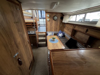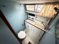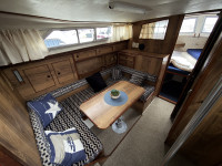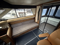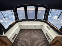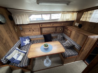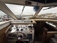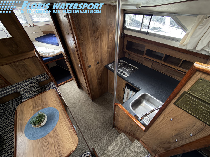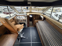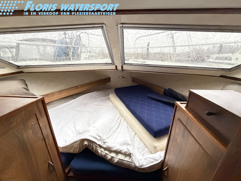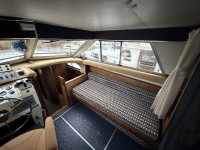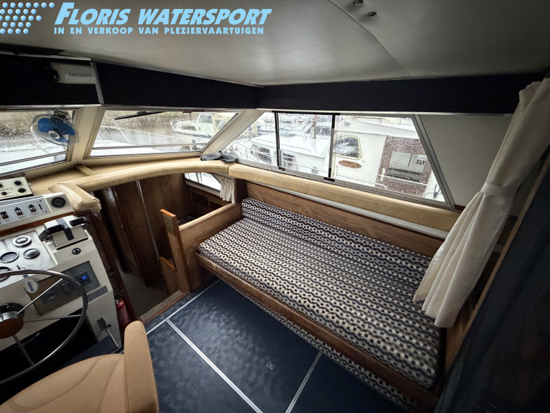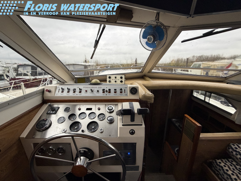 Deze Princess 33 ziet er voor haar leeftijd echt nog wel leuk uit. Het interieur oogt wat gedateerd, maar dat past bij een dame op leeftijd. Aan boord is natuurlijk heerlijk veel ruimte te vinden en de boot is met een aantal comfortabele voorzieningen uitgerust. Zoals een boegschroef, verwarming, zonnepanelen, etc. In het motorruim liggen twee krachtige Ford Mermaid dieselmotoren, die elk maar liefst 150 pk leveren, wat natuurlijk voor prima vaareigenschappen zorgt.