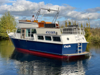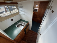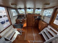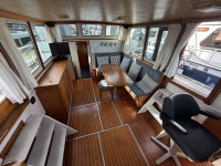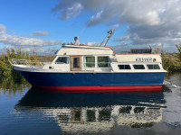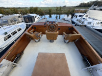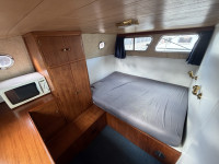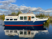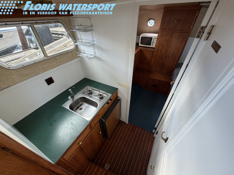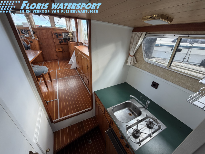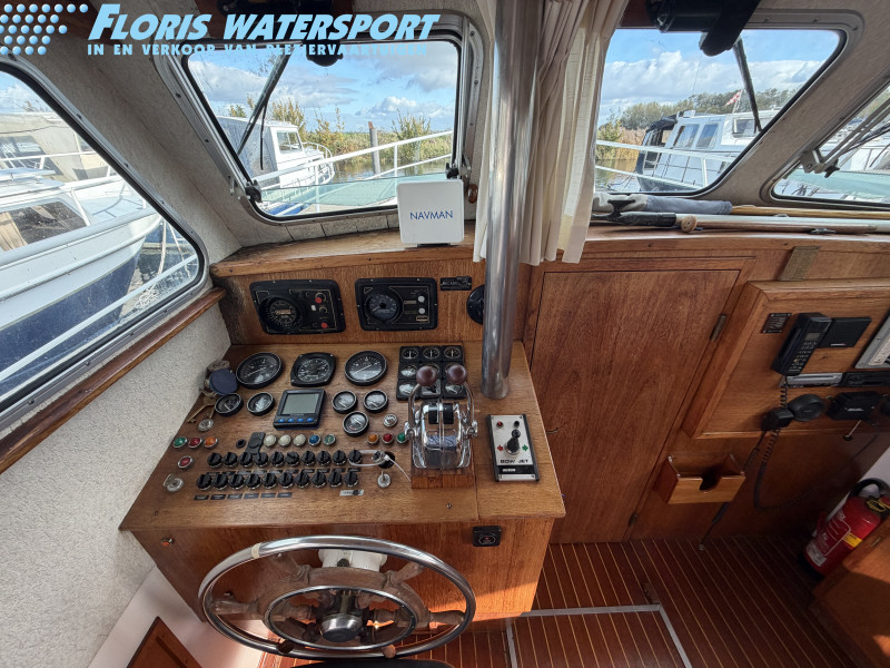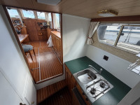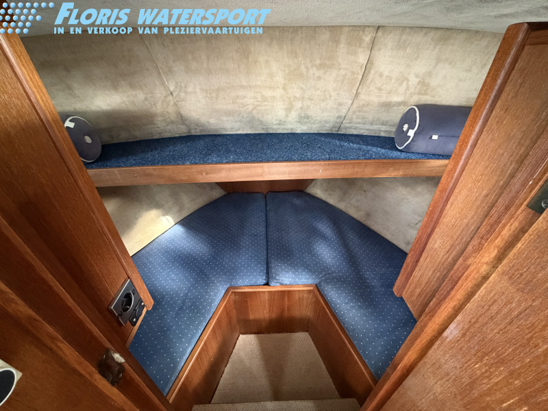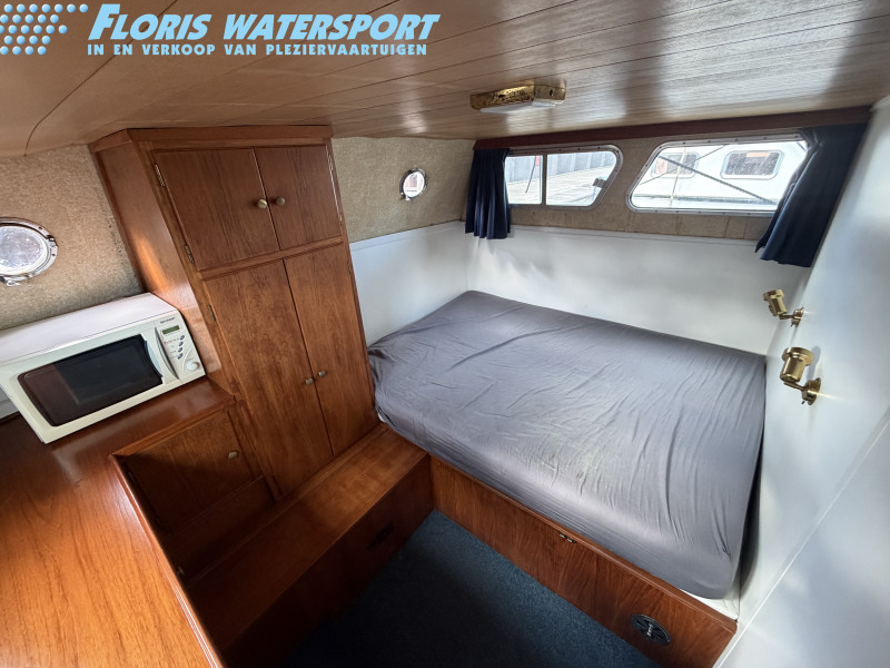 Deze Proficiat 1080 Traveler biedt opvallend veel ruimte, zowel binnen als buiten. Het achterdek en de flybridge zijn royaal van formaat, waardoor er meer dan genoeg plaats is voor een groter gezelschap. De boot is bovendien uitgerust met diverse voorzieningen die het verblijf aan boord extra comfortabel maken. In het motorruim liggen twee betrouwbare Mercedes-Benz 4-cilinder dieselmotoren van elk 65 pk. Dankzij de dubbele besturing kan er zowel binnen als op de flybridge worden gevaren, waarbij u vanaf boven een uitstekend overzicht over de boot heeft.