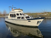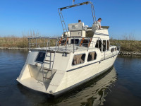 Deze Waterman 1100 GSAK heeft waarschijnlijk al de nodige avonturen op de Nederlandse wateren meegemaakt, maar ze is zeker nog lang niet uitgekeken op de watersport! Aan boord is volop ruimte en de flybridge biedt een geweldig overzicht over de boot en het vaarwater. Daarnaast is de boot voorzien van diverse gemakken. Wel verdient ze hier en daar wat liefde en aandacht om haar weer op te frissen of op sommige punten te moderniseren. In het motorruim staat een betrouwbare DAF 475, een 6-cilinder dieselmotor die circa 80 pk levert.