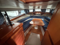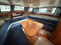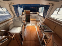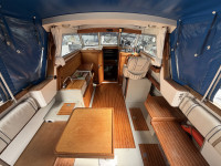 Deze Westfjord 9000 uit 1998 is een mooi voorbeeld van goed doordacht Scandinavisch design: praktisch en verrassend ruim. Ze staan erom bekend dat ze elke centimeter aan boord optimaal benutten, en dat zie je ook hier duidelijk terug. In het motorruim ligt een betrouwbare Yanmar 4-cilinder dieselmotor die maar liefst 140 pk levert. Dit zorgt uiteraard voor prima vaareigenschappen en voldoende vermogen om ontspannen en gecontroleerd te varen, zowel op binnenwateren als op ruimer water. Kortom, een degelijke en praktische boot, zoals je dat van een Wesstfjord mag verwachten. Ideaal voor wie op zoek is naar comfort, betrouwbaarheid en slimme benutting van de beschikbare ruimte.