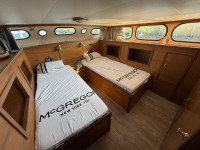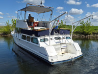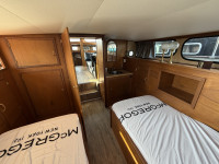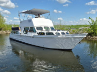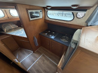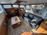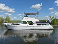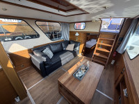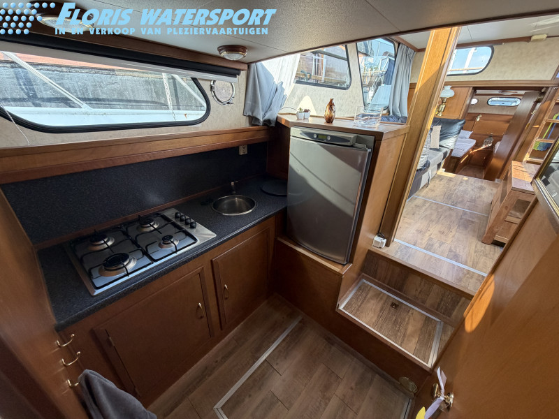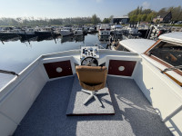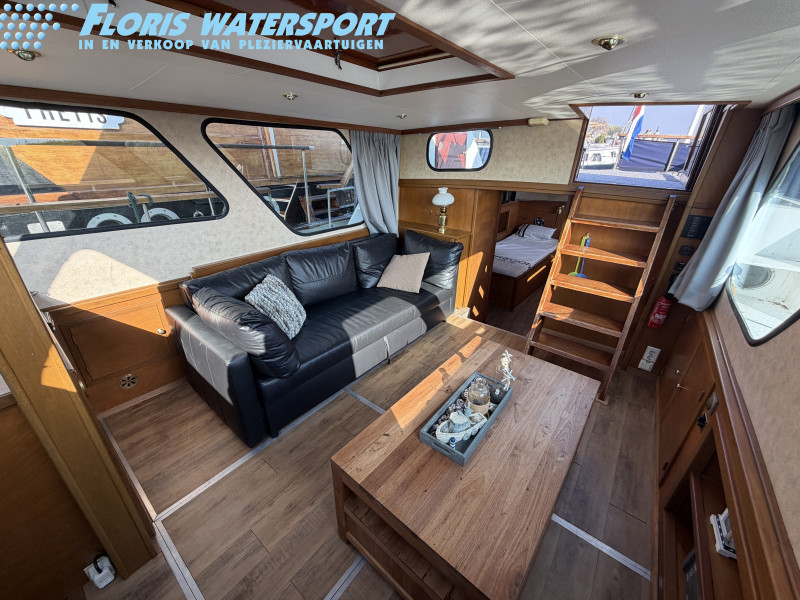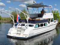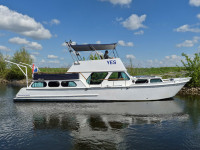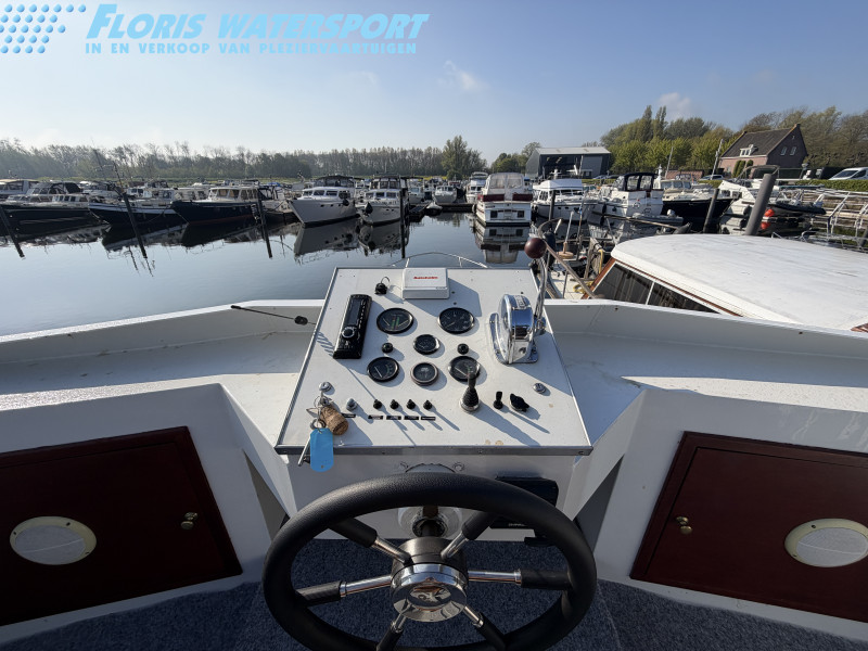 Deze ruim opgezette Weva kruiser biedt heerlijk veel ruimte aan boord. Dankzij de bovenbesturing vanaf de flybridge heeft u bovendien een uitstekend overzicht over de boot. Maar ook aan comfort ontbreekt het niet: zo is de boot voorzien van onder andere verwarming, een ruime douche en warm water. In het motorruim ligt een betrouwbare DAF 475, een 6-cilinder dieselmotor met een vermogen van 105 pk. In combinatie met de krachtige boegschroef zorgt dit voor uitstekende vaareigenschappen.