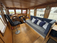 Deze Luxe Motor uit 1927 is een lust voor het oog en een prachtige verschijning op het water. In 1986 is een krachtige en betrouwbare DAF 575 6-cilinder dieselmotor geïnstalleerd, goed voor 120 pk. De achterkuip is volledig af te sluiten en biedt bijzonder veel ruimte. Ook binnen is het schip royaal opgezet en dankzij de indeling en uitrusting uitstekend geschikt voor langer verblijf aan boord. Het houtwerk in het interieur geeft het geheel een fraaie finishing touch.
