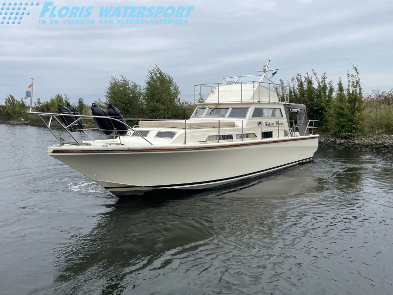 Deze mooi en klassiek gelijnde Jeanneau America is voorzien van 2 goedlopende Renault dieselmotoren. Het is een mooie boot, maar helaas zijn de watergesmeerde schroefas keeringen lek, en kan alles even een grote beurt gebruiken.