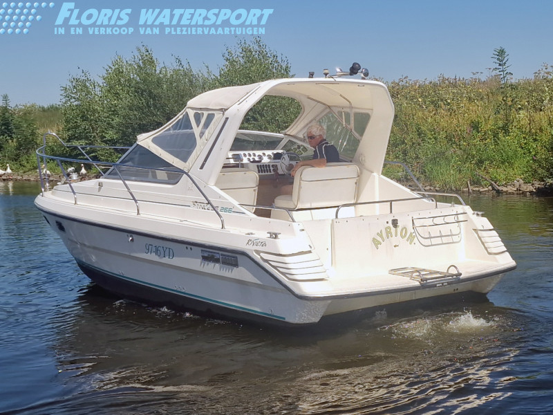 De Princess 266 Riviera is een populaire sportcruiser die bekend staat om zijn stijlvolle ontwerp en solide prestaties. De boot biedt verrassend veel ruimte voor zijn formaat, met een goed ingedeelde cabine. Het interieur heeft een salon die omgebouwd kan worden tot een slaapplaats, een kleine kombuis en een natte cel met toilet, douche en wastafel. De Princess 266 Riviera wordt geprezen om zijn goede vaareigenschappen, waarbij comfort en stabiliteit een belangrijke rol spelen. Aan boord liggen twee sterke Volvo Penta dieselmotoren, die 150 pk per stuk leveren.