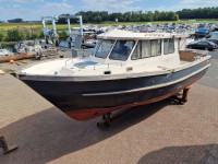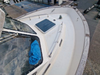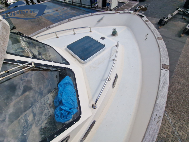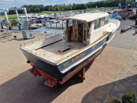 Deze Cygnus CY-FISH 33 is overvaren en daardoor kortstondig gezonken. Er is bij dat incident een flinke polyester schade ontstaan. Op dit moment drijft de boot niet. Maar als we de kenners mogen geloven, dan is de schade te overzien en op zich prima te repareren; maar het is wel een flink project.