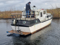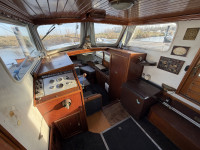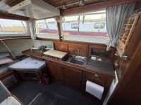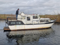 Deze Heck kruiser is toe aan een goede opknapbeurt. Even lekker helemaal opfrissen en technisch nalopen. Dan kan er van de zomer weer heerlijk mee gevaren worden. Wanneer er binnen weer een stuur wordt geplaatst, kan men zowel binnen als buiten varen. De boot wordt verkocht zoals hij erbij ligt, dus gewoon oppakken en meenemen. In het motorruim ligt een Mercedes OM636, die 38 pk levert. Kortom: een opknapper... maar wel een leuke, met potentie.